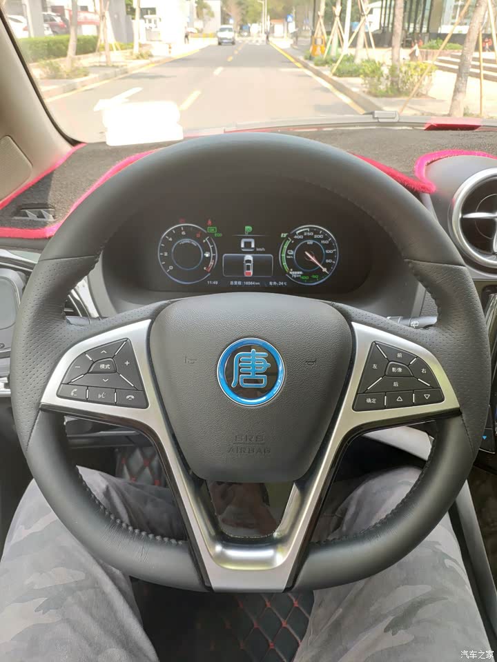 方向盘其实算是轻了, 调到最重也还是很轻, 转向还可以, 车头短也比较好看位置。 但是刹车不太行, 刚拿到车的时候挺硬的 ,刹车很好, 但是开了几千公里左后刹车越来越软, 越来越刹不住。 网上说是这一代唐通病 ,很多车主都有着问题。 以后有钱再打算改刹车,不然还是存在安全隐患的。 唐二代布雷博刹车和碳陶瓷刹车盘我非常喜欢, 可惜当时急着提车,没等到。这个车可能因为底盘高, 而且刹车不行的原因 ,急加速减速抬头和点头反应很明显。而且原厂胎感觉也不太行,起步踩的急一点一定会打滑 ,应该有很多老唐车主感同身受。