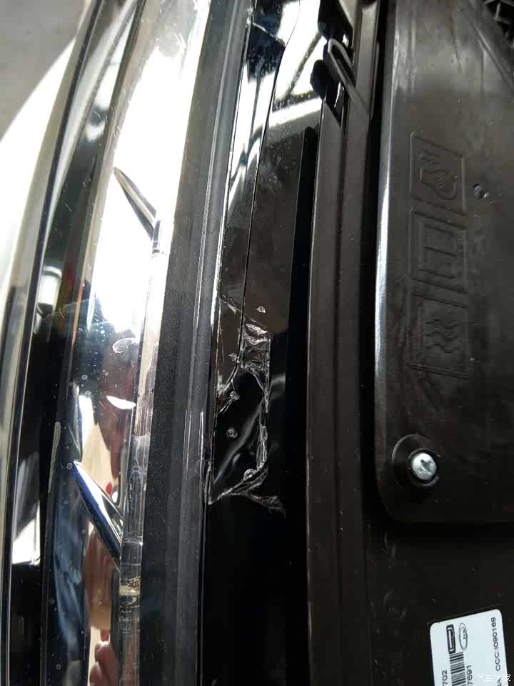 前左大灯,人为损坏,开裂炸开比较大,怕雨天进水,还是得换