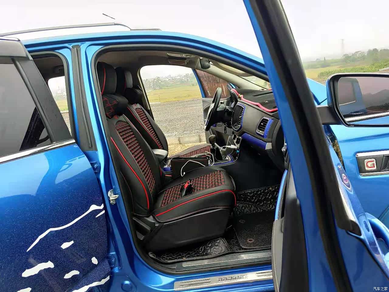 外观高大霸气,门框整体成形,梁架前后贯通!有硬派越野车底盘实力!驾驶室前排空间较大,视线高,有居高临下的感觉,操作台比较宽且平坦,是我的最喜欢的那种,扶手箱不算小,整体搭配谐调。前左有有一键升降窗,其三个窗有一键下降,可以满足需求。改装空间非常大,喜欢改加装的朋友很好的选择之一!发动机采用g 平台五十铃vm 技术,中规中矩较为稳定。变速箱六档变速,位置手感中规中矩。带防侧滑功能,定速巡航功能,在皮卡车中配置算丰富。钣金算皮实耐用,在很倾斜的交叉轴地上开关门很轻松。底盘也很高,通过性很强!