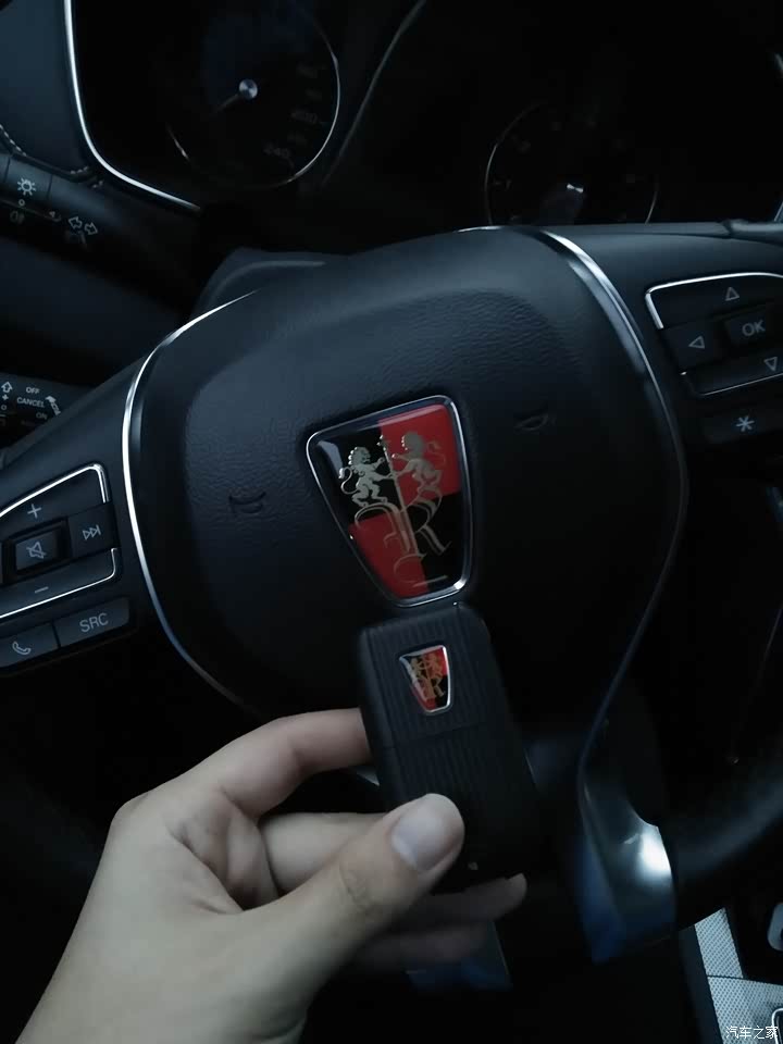 中控台部分设计的比较规整,大块的采用软性材料,金属质感的按键也能提升高级感。没有更高配互联网盘的竖型大屏带来的科技感,但是旋钮式的操作给人很强,也一定程度上避免了屏幕失效或者短时间失灵的时候比较重要的操作无法进行的情况。内饰整体用料比较到位,但是豪华感相比于博越和vv7、vv5等竞品有一定程度的缺失。个人认为方向盘的设计和荣威的标志不够简洁好看,钥匙设计的也没有科技感和气场。