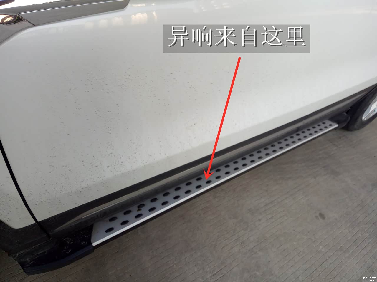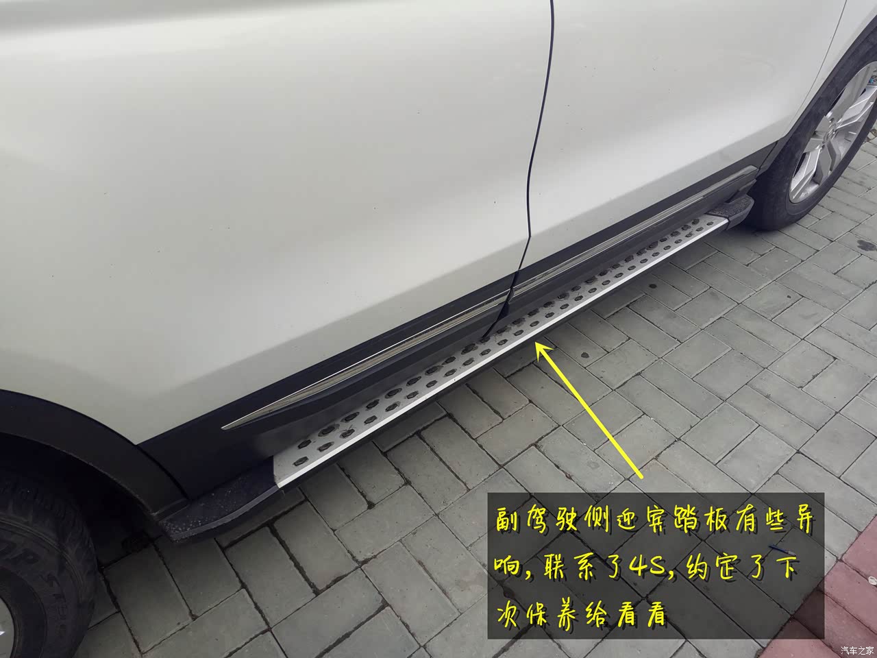 故障的话,目前大修的几乎没有,小毛病呢,还是有点的,这一次主要说说“迎宾踏板”。大概10天前吧,媳妇说上车开门时有异响,我也有听到,声音还蛮大,开始以为是车门的问题,后来才知道,原来是迎宾踏板搞的鬼。但是也奇怪,踏板并没有明显松动,这几天下雨,我闲地下脏也就没有查看车下面的情况,就这样,先忍了吧。