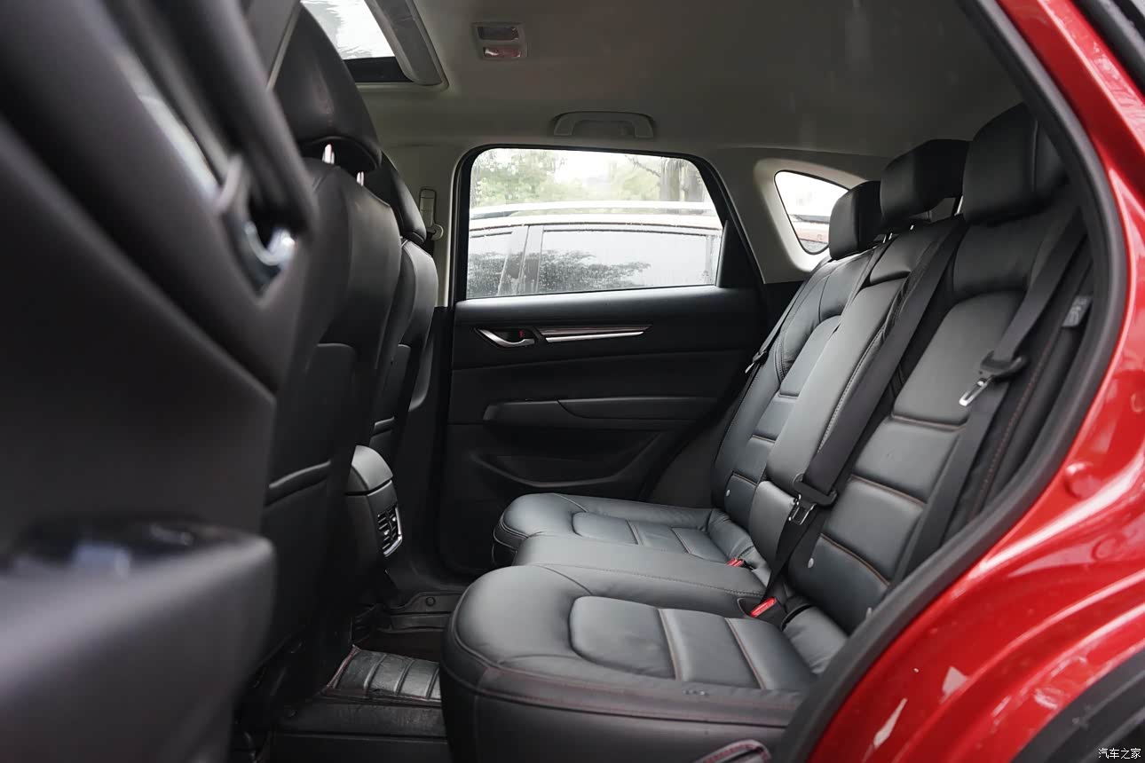储物空间比较丰富,中控下面的大储物格可以放下很多零零碎碎的东西,手机放在里面也不会掉出来,比较实用。后排也比较宽敞,虽然和途观没法比(途观的后排真的可以用恐怖来形容),不过感觉CX-5的座垫比较长一点,大腿部分的承托比较好。后排做三个人肯定是没有问题,稍稍有美中不足的是中间这个地台高了一点点,好在中间的座椅有头枕,坐起来还算舒服的。