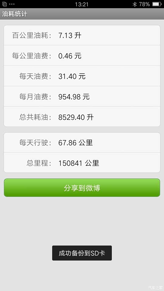 目前行驶了142723公里,整体油耗平均在7.2左右,论一面包车来说这个油耗还算可以!