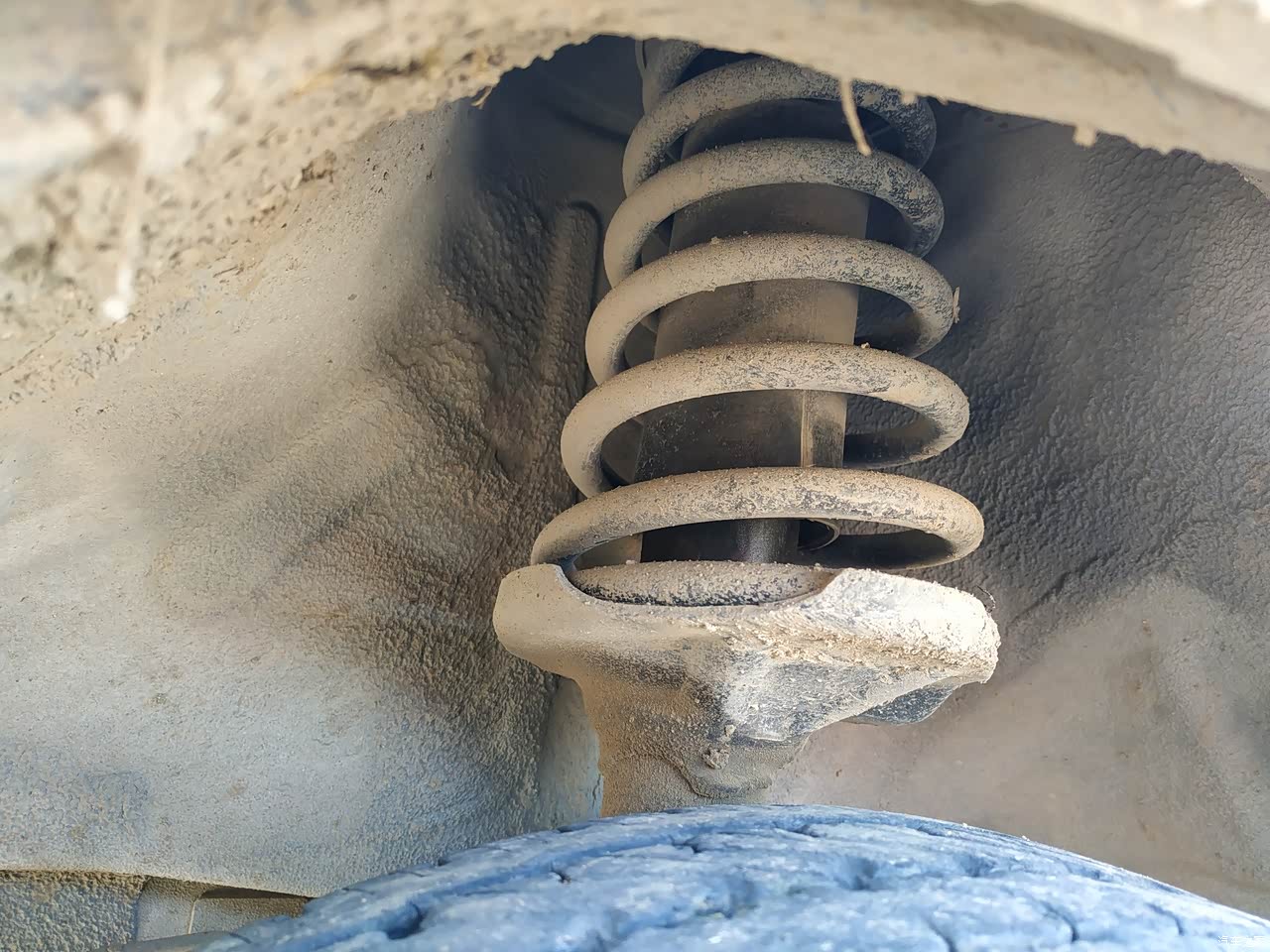 这是前悬挂,很简单的液压弹簧减震器,对于各种路况都能承受,自然噪音肯定不会很小的!