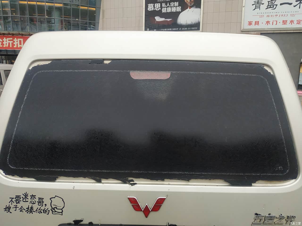 驾驶位置的雾灯一直存水,应该是灯罩没有密封严实,虽然存水但是雾灯依然能够正常亮启,这就是五菱品质吧!后档玻璃的贴膜,由于今年审车没有达到要求,只能撕下来,审完车以后就好歹的贴上去了,虽然不美观,但是依然能够起到作用! 另一个故障问题就是挂二档出现调档的现象,咨询了一下,说是变速箱的齿轮出现了问题,需要修理变速箱,这个问题还是要斟酌一下,毕竟五菱以后作为送货车辆,行驶的并不会很多,所以修理还是推后一下吧!