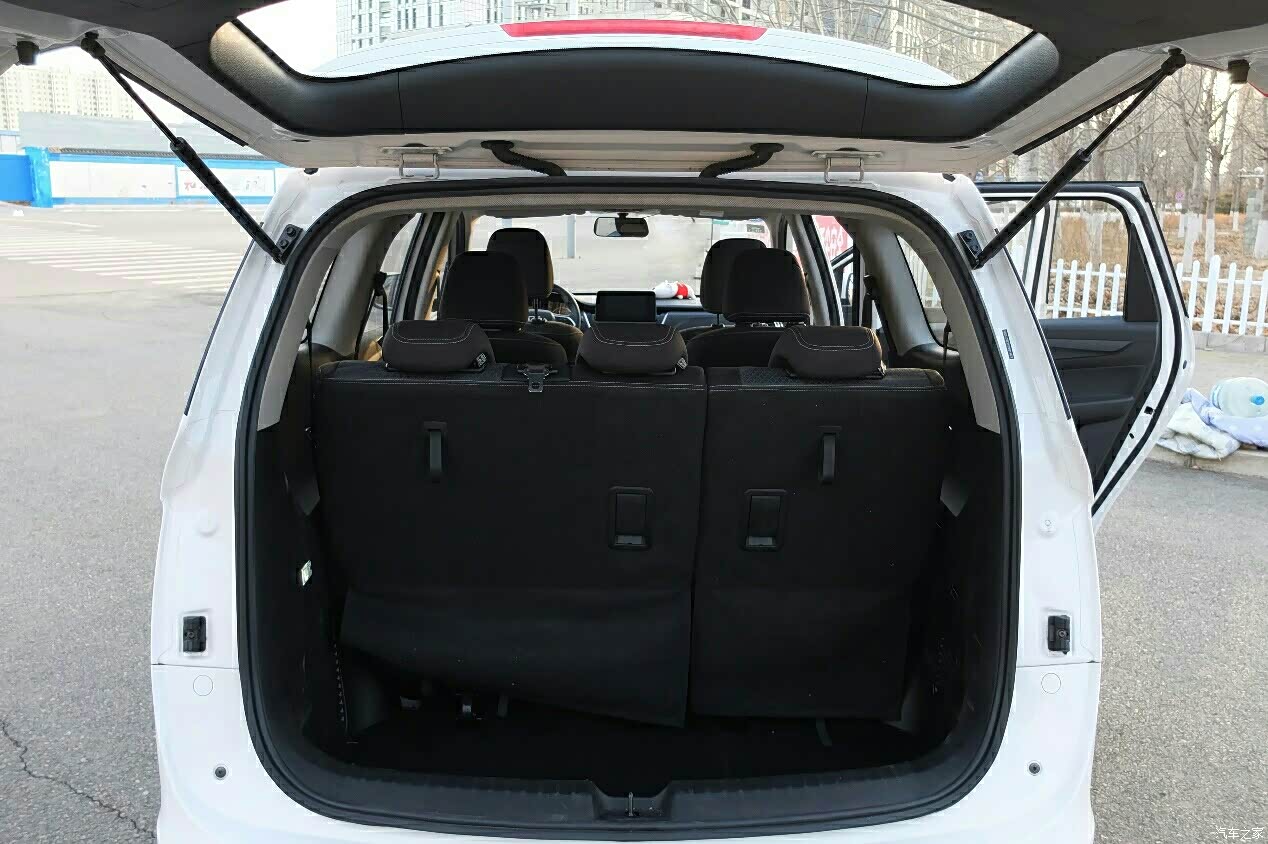 外观很漂亮,白色的看上去很大气;最满意的是空间很宽敞,七座空间完全够用,驾驶室和第二排都有很大的空间,驾驶位上我的头部是一个半拳头,坐在二排腿也能伸缩自如,除了节假日和长途出行,一般第三排没人坐,都是放倒放东西,储物空间很大,能装不少,如果将二排也放倒,那在车里就是随便躺;倒车影像很清晰,定速巡航、胎压监测也都有。