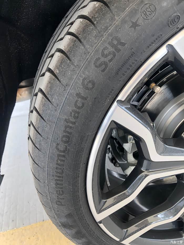 拿到的是马牌pc6,这车轮胎比较奇葩,225有点窄,要是245就比较好了,感觉这个胎是家轿的宽度,suv的尺寸,运动轿跑的扁平比,总之奇葩,不好配,好像只有马牌和陪耐力有这个尺寸的防爆胎,价格不便宜。