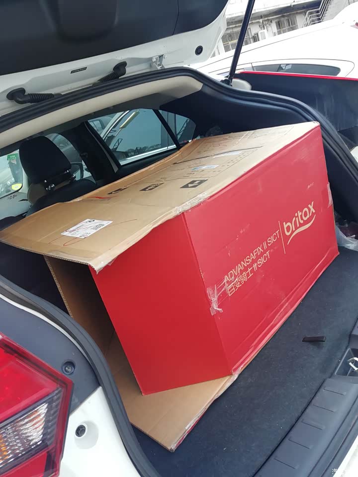 给娃买了宝得适安全座椅,去提货箱子是真够大!调整了遮物帘的位置还好放得下。