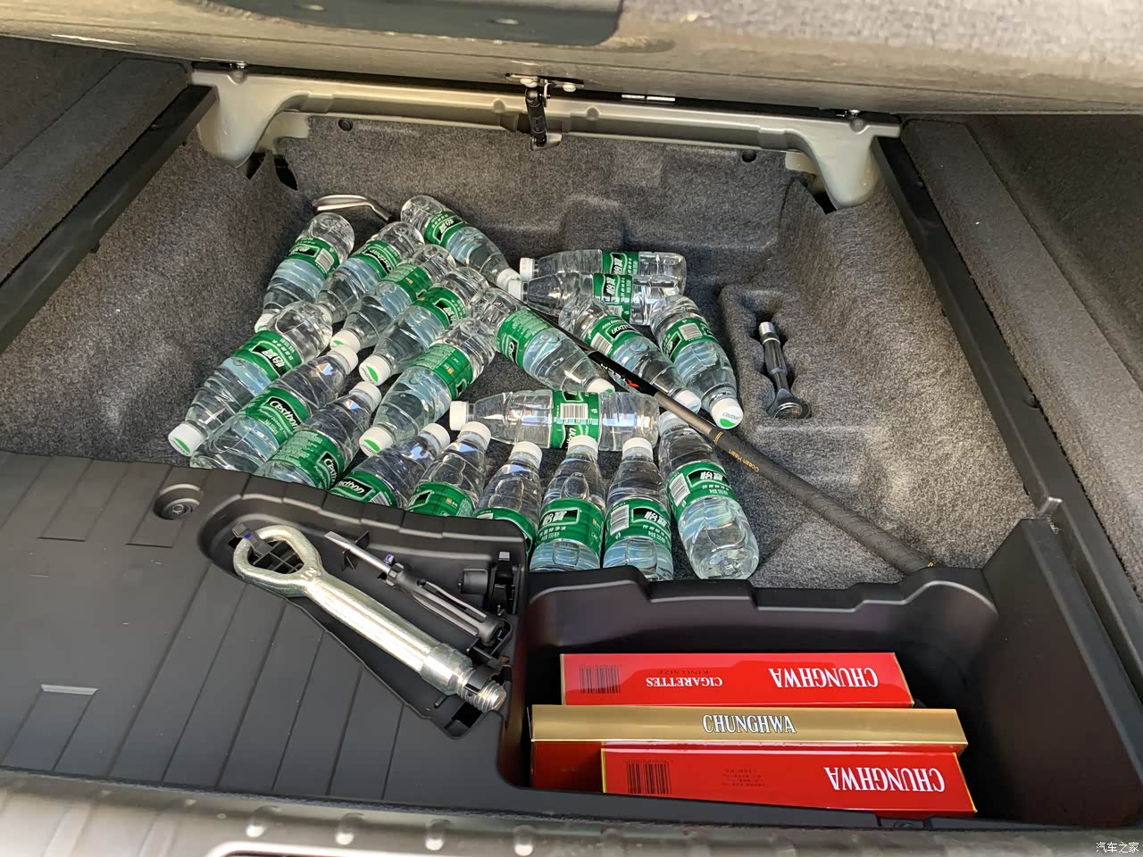 前后排门板储物的空间非常充裕,横放两瓶水没问题,但是要吐槽的是副驾前的储物箱和扶手箱的空间,只能放一些基本的证件,这点比起奥迪,属实空间没有利用的更合理充分。