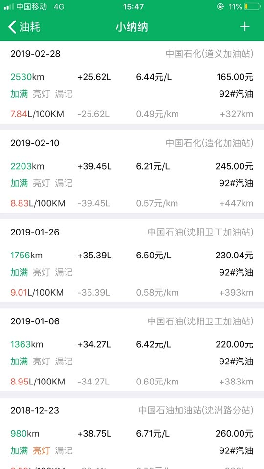 这是我用小熊油耗的记录。挺直观的,油耗降了不少。