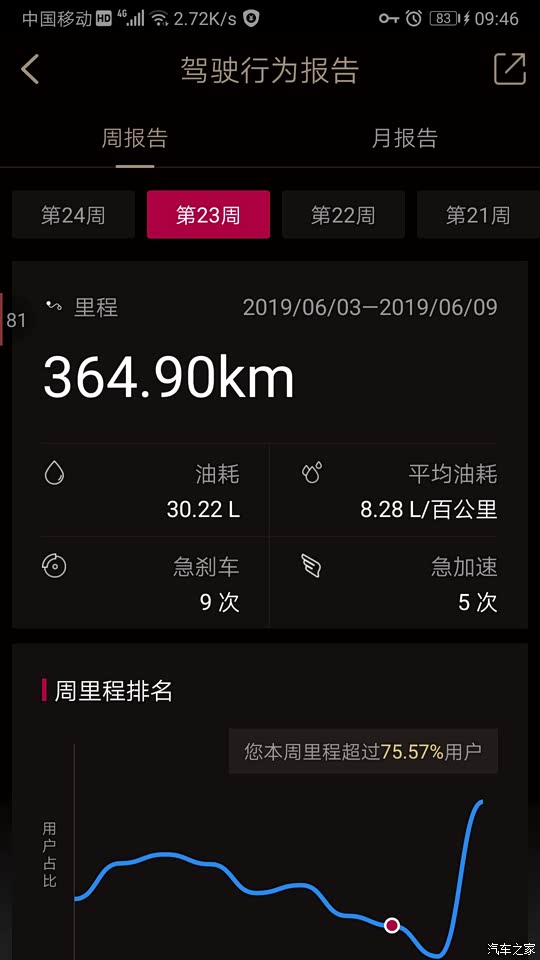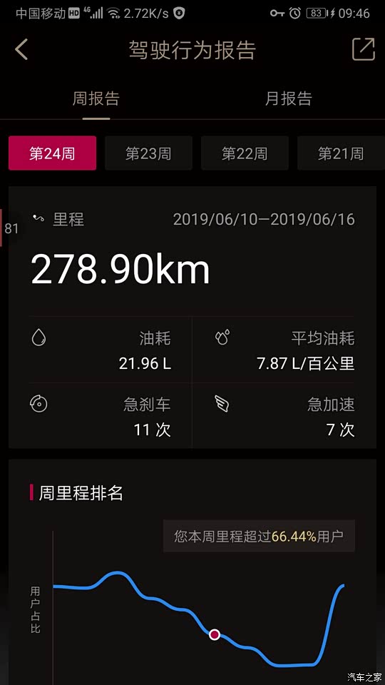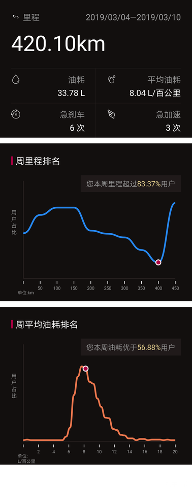 车联网APP显示的周油耗
