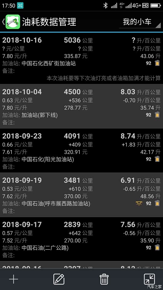 这是5000首保时候的油耗,仅供参考。最近的没截图上传