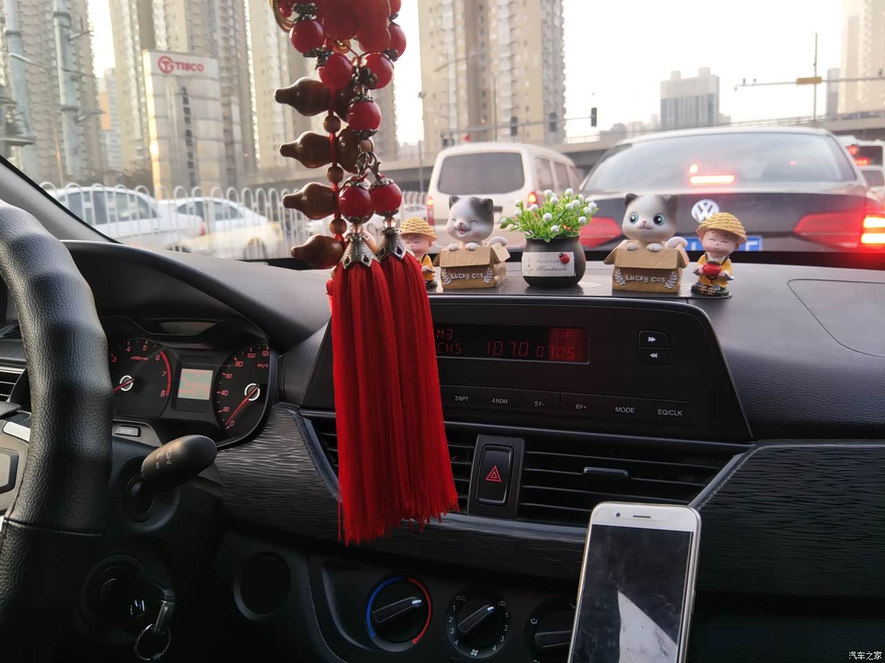 内饰中控台的样子还可以,只是收音机那块的材质觉得不太好,且觉得收音机的设计也不好看,高出中控台,显的有点突兀,个人不喜欢。自己对车辆的摆件做了精心的布置,每次看到以后心情变得更好。