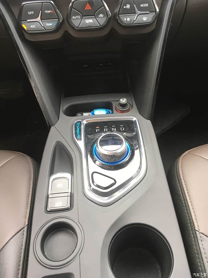内饰就没什么可说的,简约而又简单,基本上没有一点新能源的那种高科技产品,液晶仪表也没有,360度全车影像也没有,显示屏还那么小。就旋钮式换挡看起来还可以,毕竟是仿豪车的。