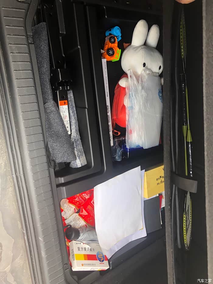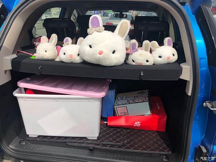 我的后备箱塞的是比较慢的,除了一些可爱的小兔子以外,基本上放的就是一些小杂物幸好备胎是在后面。