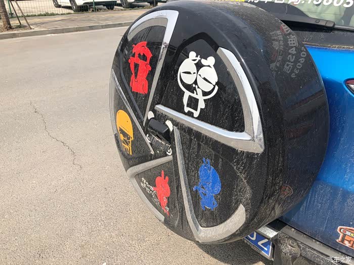 外观各方面还是比较喜欢的,毕竟如果当初看不上的话也不会考虑买这款车了,小型SUV而且备胎是外悬挂式的显得更加动感时尚。配一个旋风式的备胎罩更加的炫目。