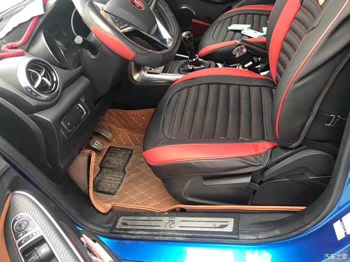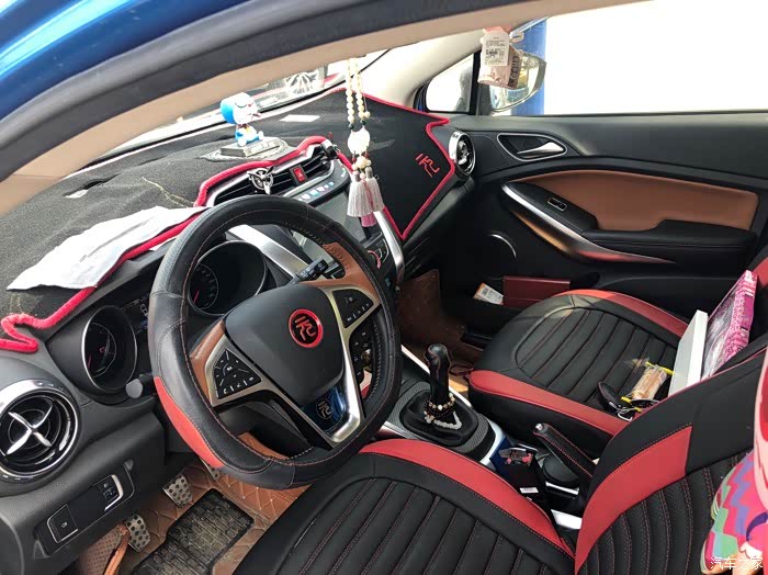 类似上采用黑色和棕色两个颜色的搭配,而且大面积使用了软材质,在刚提车时还是比较有异味的后期,大概使用了有三个月后,基本上没有什么异味了这个车比较满意的地方,是他这个智能化多媒体的各方面不像普通的车型一般只能使用音乐或者是导航他更多的使用很多的手机上可以使用的App软件,比较有科技感。
