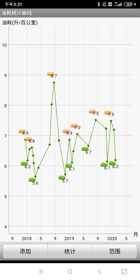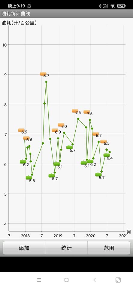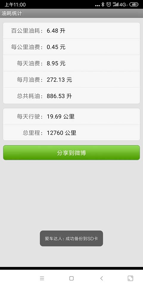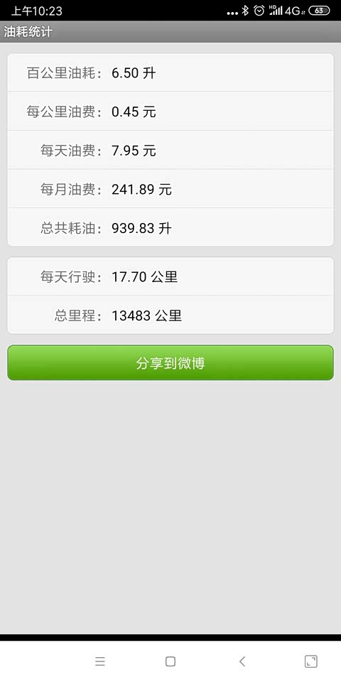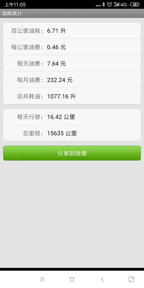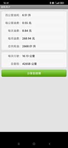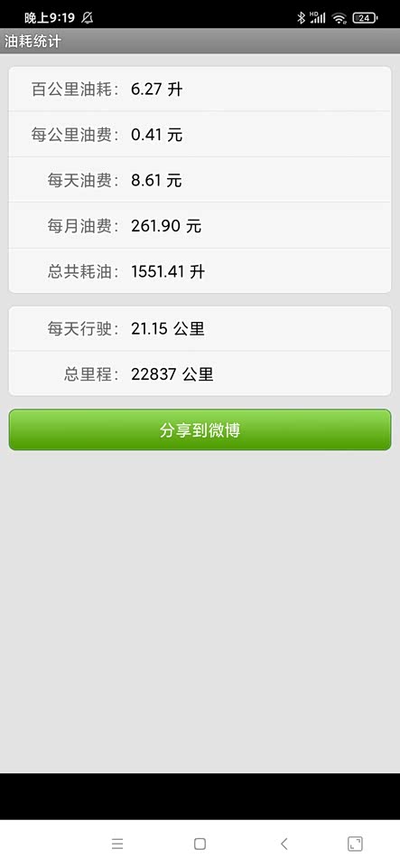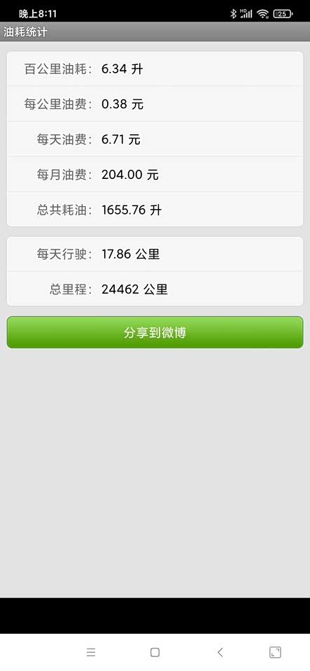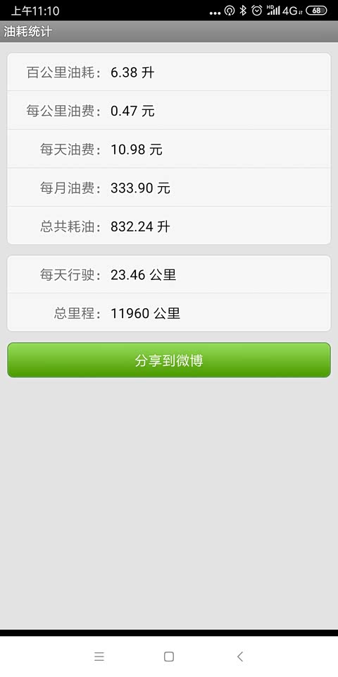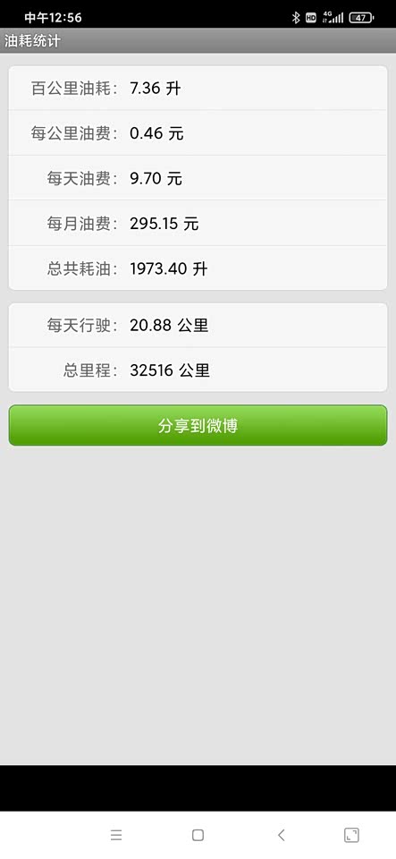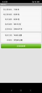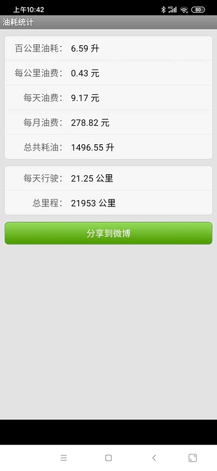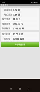这是上一次加油以后的油耗,开车很少,还没有最近加油的记录!