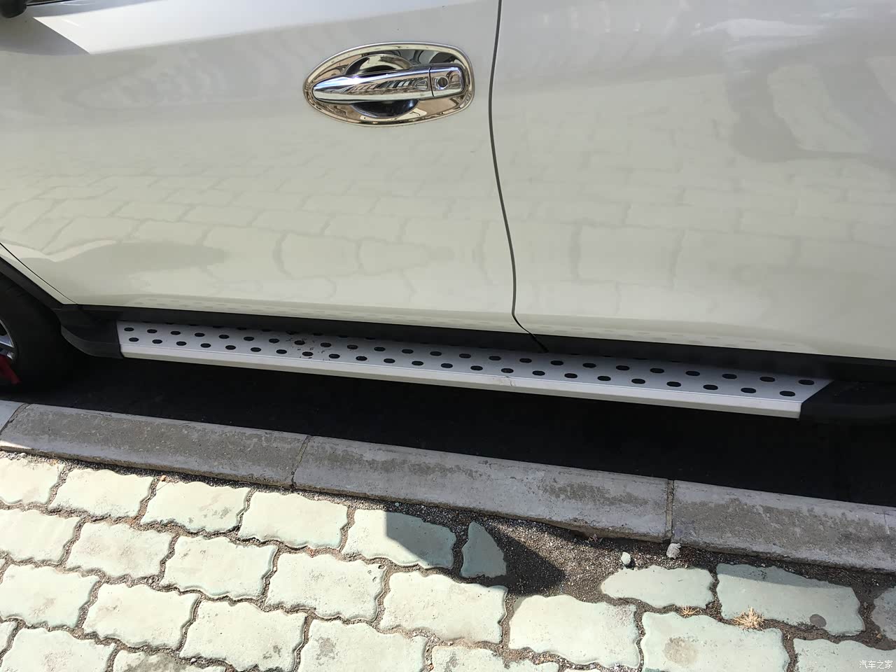 提车的时候儿4S店赠送了发动机护板、行李架、脚踏、前后装饰保险杠和全车脚垫,自己买了铝合金的门把手护腕,做了地盘装甲(包括了四个叶子板),换了一个鲨鱼鳍天线(拆棚安装的那种)
