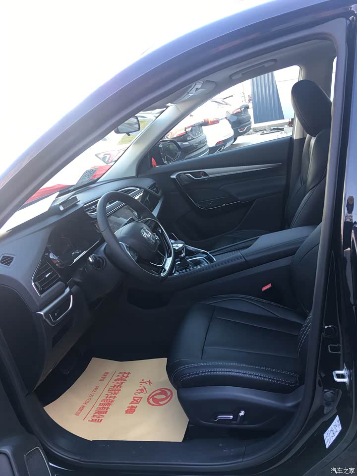 中控屏分区很明确,车辆信息一目了然,触屏效果也很灵敏,内饰颜色还是主打的黑色为主,为了怕塑料感强烈在中控台上面增加了钢琴烤漆提升档次感,入眼可见的地方都是皮质的,虽然我也不知道到底是不是真皮 ,手感触感还是蛮不错的,坐着也舒服。