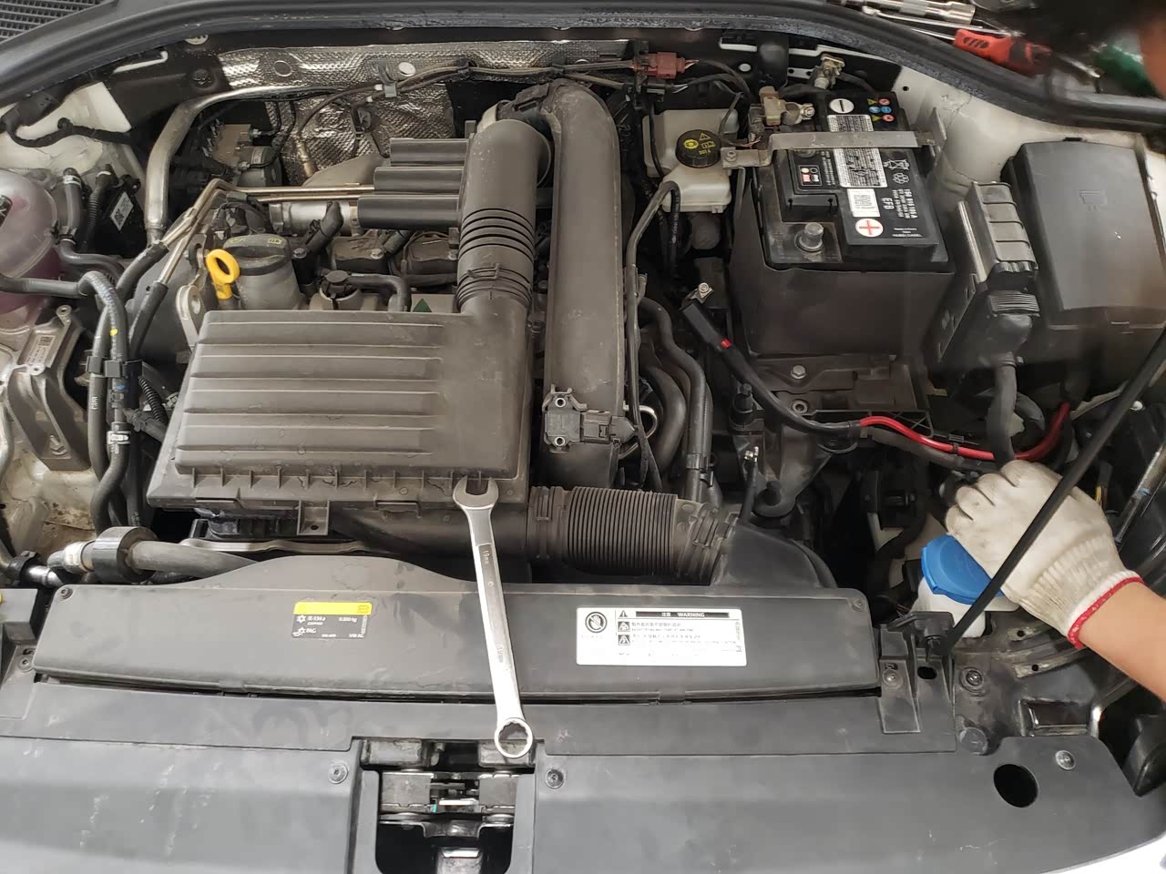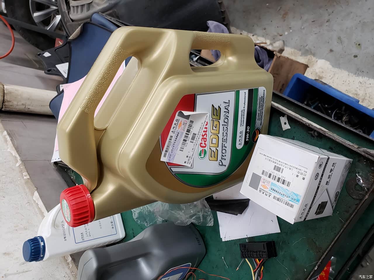 首保是4S赠送的,自己加钱上的嘉实多全合成机油。 技师态度不错,还清洗了发动机的灰尘。