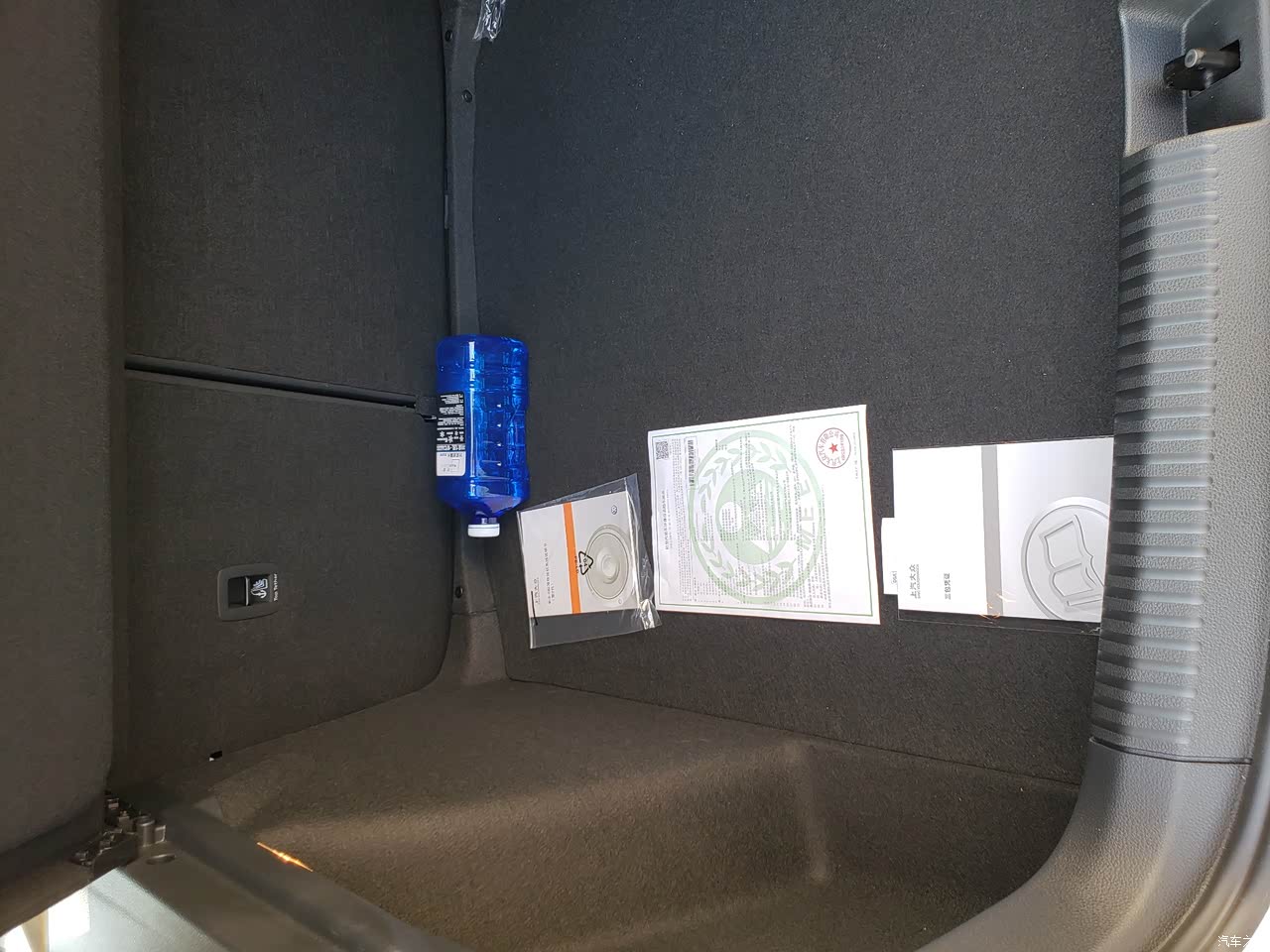 车内储物空间也是很够用的,前后门上放大的农夫山泉没问题,中控下面放两部手机,还有特别的卡槽,很贴心。中控扶手箱、手套箱都是很宽裕的。