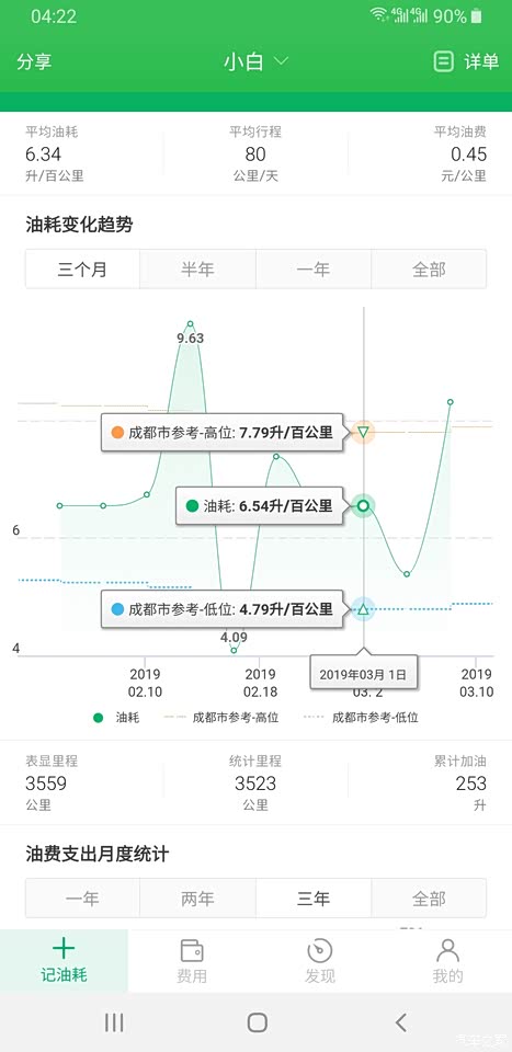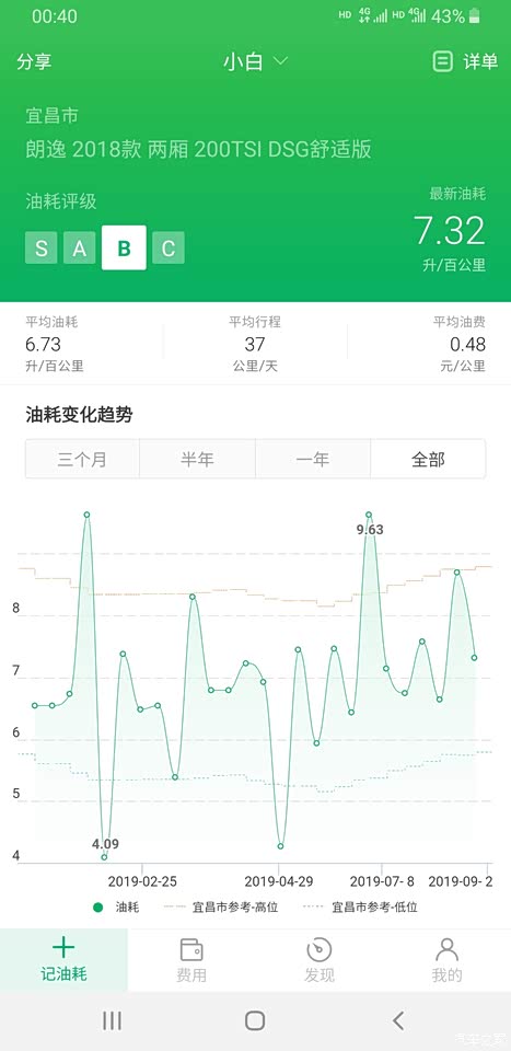 这是从提车开始到现阶段的整体油耗计算,误差不会很大。