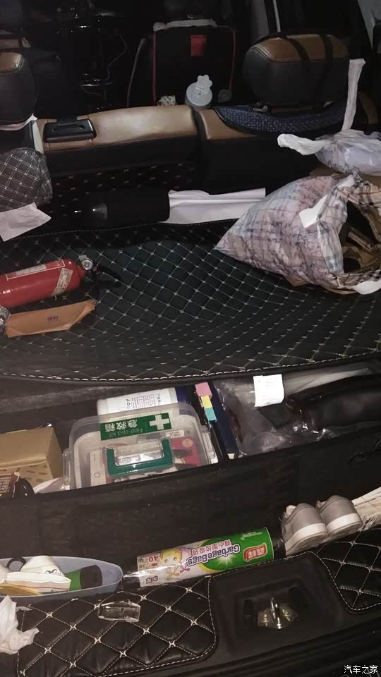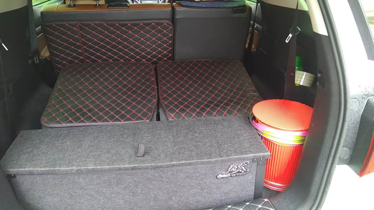 这是我的收纳盒,乱七八糟都在里面,垫子是昂科威的后备箱垫子,完美尺寸