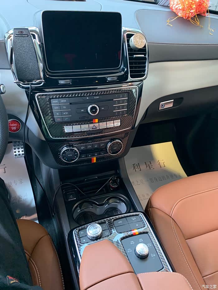 杏黄色座椅内饰,AMG独有?喜欢!自己某宝淘的碳纤维内饰贴!帅爆了!