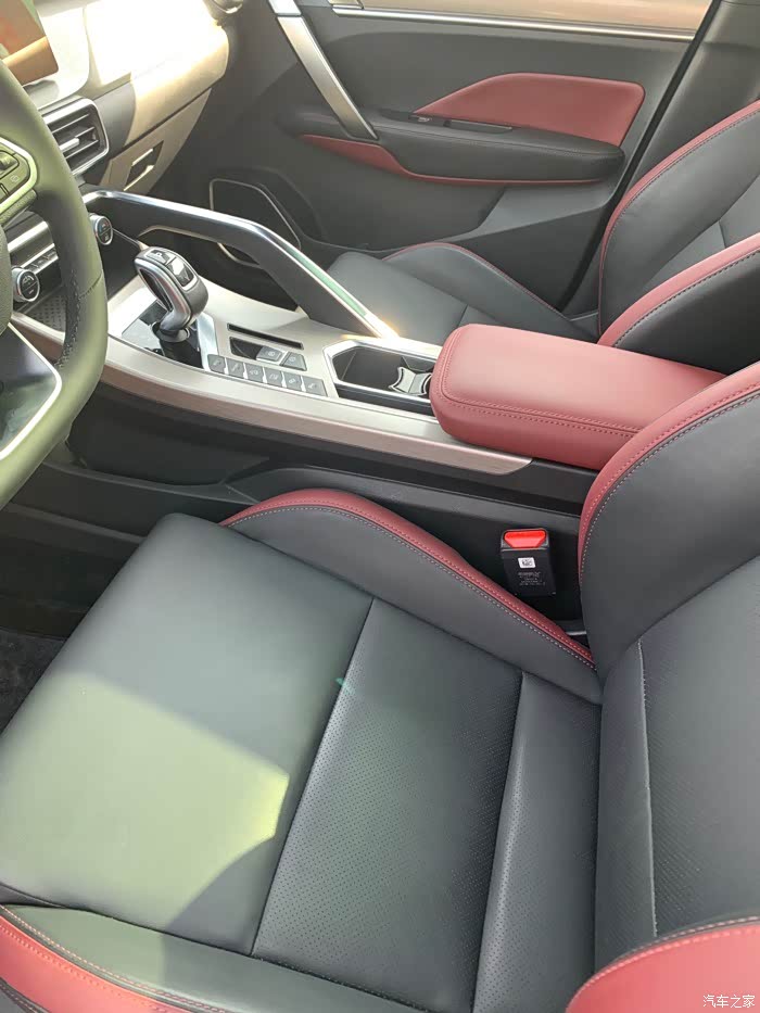 内饰方面给人带来一种特别整齐的风格,大尺寸的屏幕,液晶仪表盘,换挡拨片,电子档位,全景天窗,给人一种满满的都是科技感的感觉,红黑风格的内饰设计,让整个车看起来运动氛围很浓厚,座椅的包裹感很强。