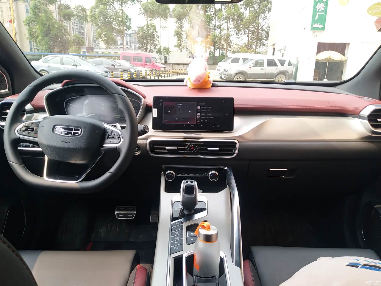 内饰结合了现代的气味,前中控台银色的金属面板拉丝以及暗红色前中台,使得更加有活力,更不乏高端气息,电子档把,电子手刹,中央扶手箱这一系列都可以看得出,这款车精心之作,用车造车,像吉利李总也说过这样一句话,造每个人的精品车,这一点在缤越上确实是可以感受出来。