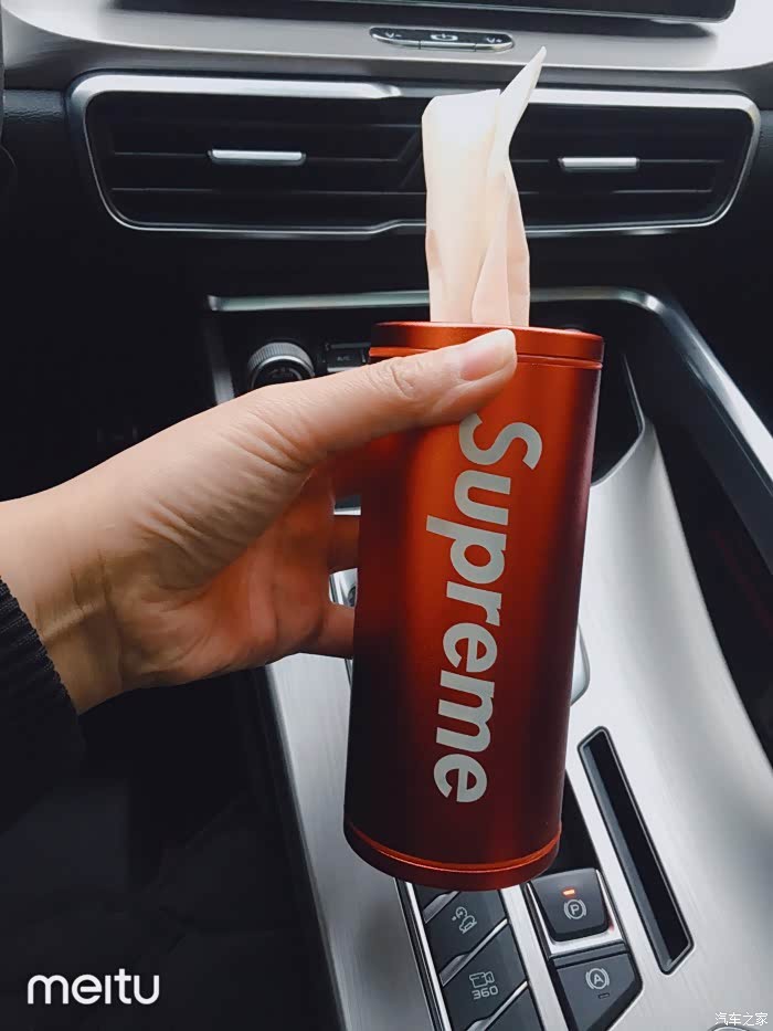 前排我放了抽纸桶,还放了加湿器,后排还有两个放茶杯的