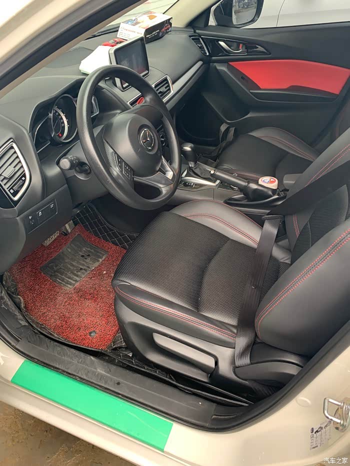 外观很满意,毕竟我是颜值控,昂克赛拉前脸配上她的车身线条很有运动风和攻击性,个人比较喜欢这种设计,原车配备的是黄色灯光的大灯,亮度没有LED的好,16寸的轮毂虽然不是运动范,但是感觉也没必要花钱去改了。珍珠白的颜色在太阳下感觉很亮,本来打算买红色的,4s红色要加钱,最终还是败给了金钱,最后才有了我的小白。