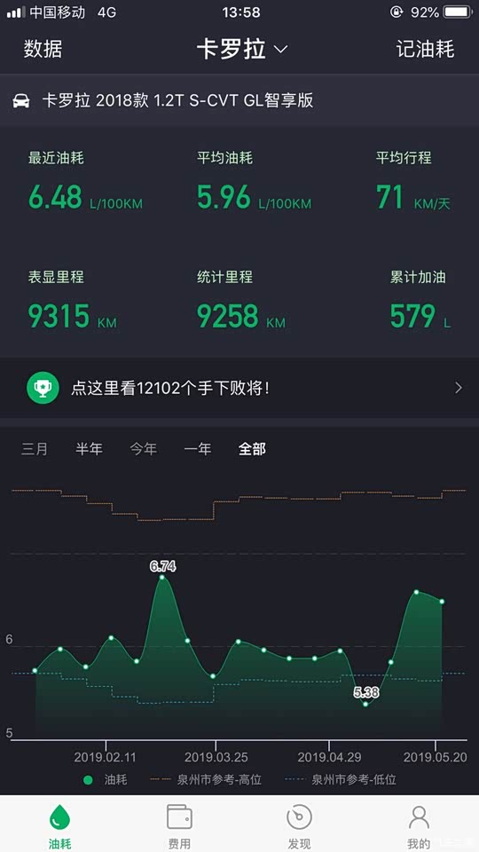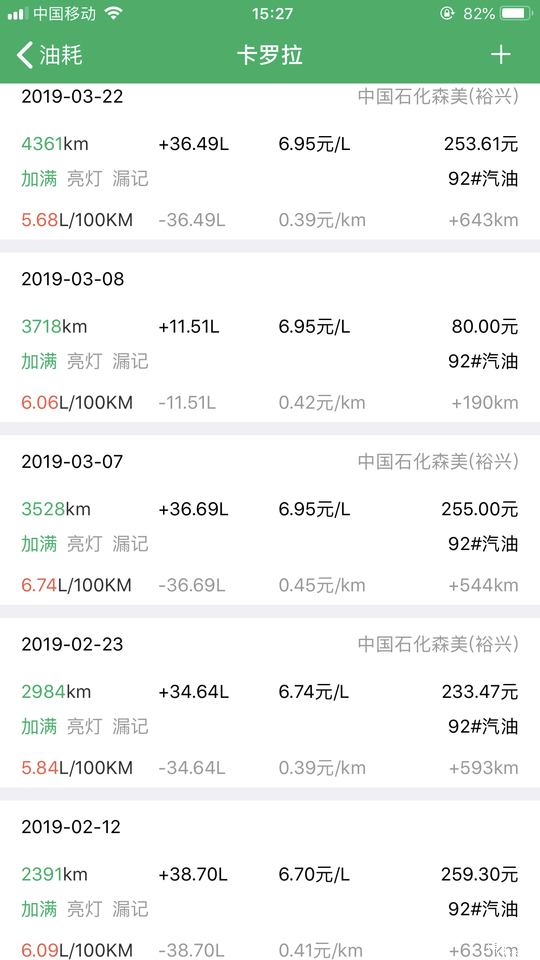 夏天到了,油耗略有升高。一直都是在附近的中石化加油,冲1000送60,个人加油卡还直降0.6元,优惠前来说油耗4毛/公里还是蛮便宜的。