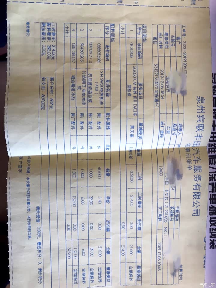 12月初做了第二次常规保养,之前买车的时候,4S店送了四次5W20的机油、机滤,所以这次收费的只有喷油嘴清洗剂和工时费,空调滤芯是自己网上买过来换的,论坛里看到很多人说喷油嘴清洗剂可以不加,但是新车毕竟还是比较爱惜的,😂也就是几包烟钱,索性就加了。