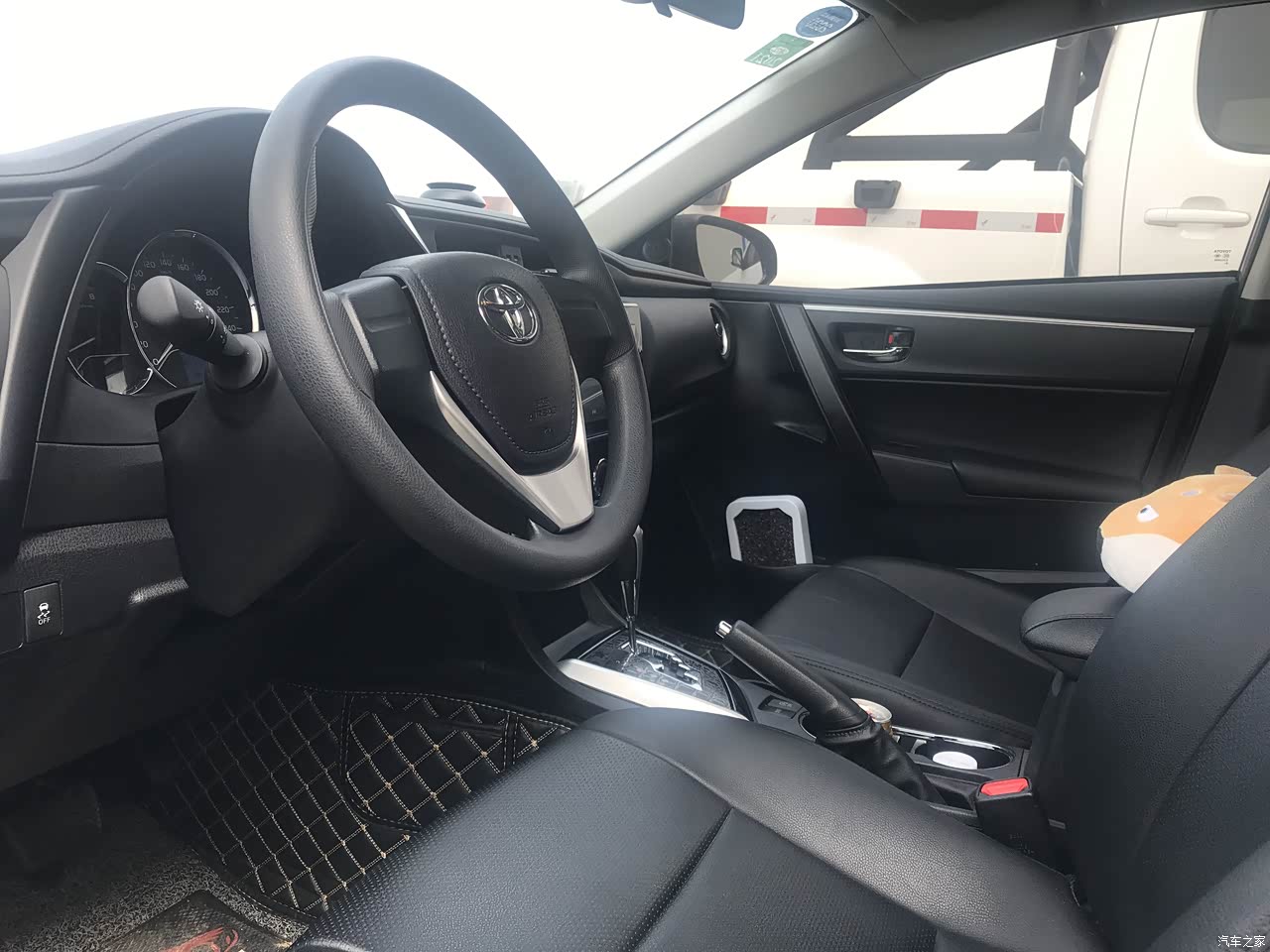 全黑的内饰,说不上好,谈不上差,个人感觉吧,反正我是觉得挺满意的。吐槽下4S店送的脚垫,真的是差,自己网上买了一套全包围脚垫。