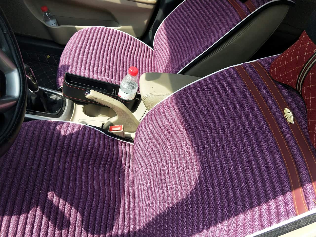 内饰是真皮座椅,米色内饰板显着车特别干净,打理也方便,直接用鹿皮加点清洗剂就能擦干净,刚买车时有点异味,放点菠萝皮通通风,几天就没味了。