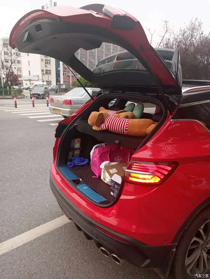 后备箱装了女儿的玩具,零食等,随时出发出去玩 但是确实是放不下儿子的婴儿车了,这也是二胎的烦恼吧