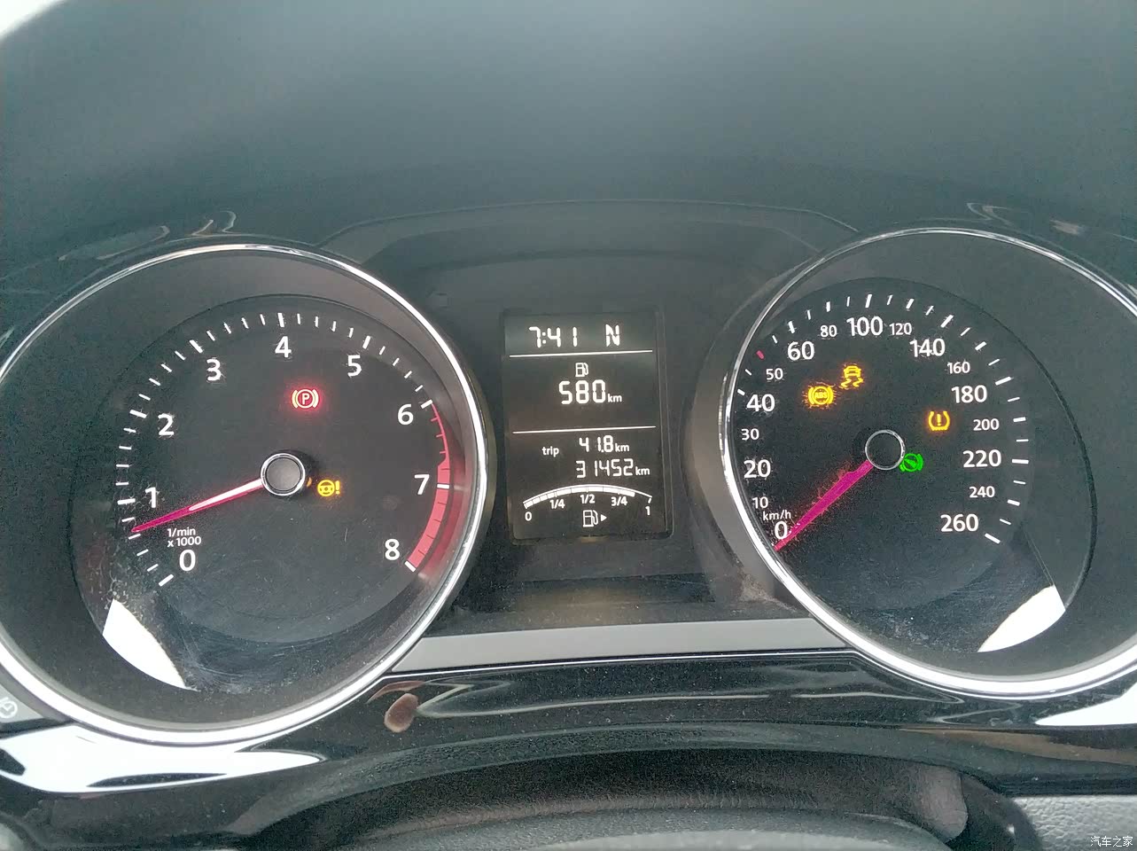 方向盘无按键,纯粹驾驶胜在实用,该有的都有。油表和水温表简配了,好在可以行车电脑里显示或报警。