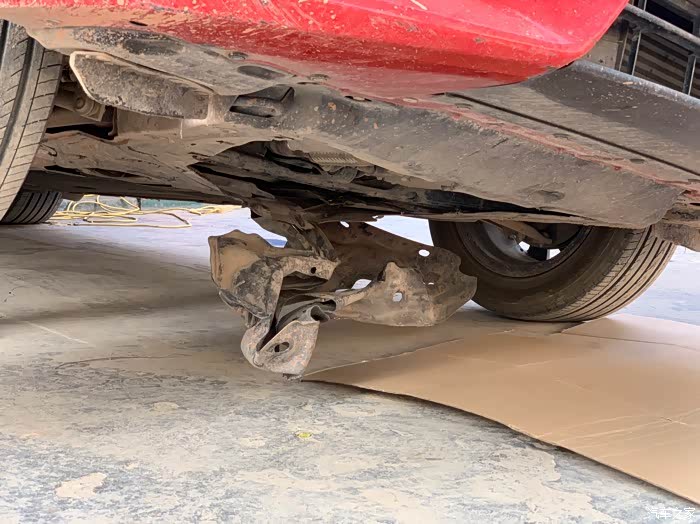 发动机护板坏了两块了,务必不要跑烂路。这个车底盘没啥问题,发动机油底壳、护板位置均低于底盘!