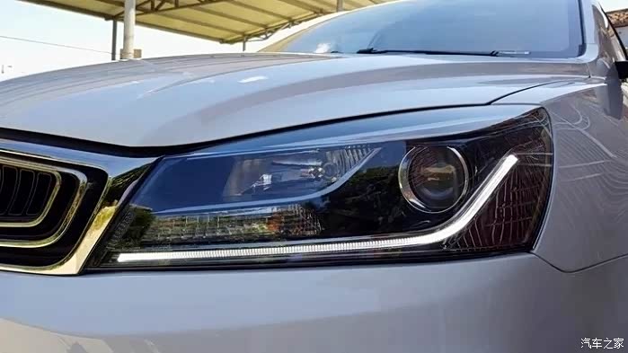 帝豪前照灯采用透镜加卤素,带日行灯,照明效果只能说够用。尾灯设计新颖,示宽灯采用LED灯带,点亮效果漂亮!