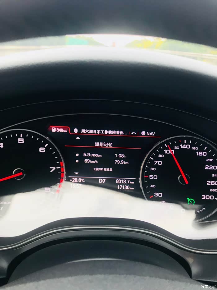 这是我最满意的地方,个人认为比宝马和奔驰省油,这么大的车身,两吨的车了,你别说,奥迪发动机技术真的给力,有一次告诉全程120匀速,开到5.9的油耗,不信你看图