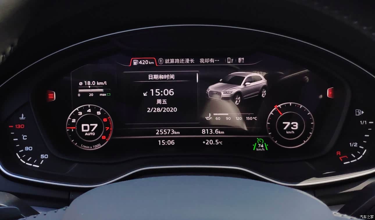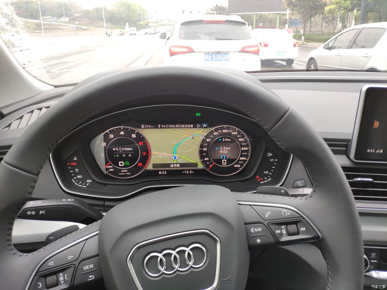 油耗,不是我关注的重点,但必须要说真的出乎意料的低!对比老款Q5,每100公里可能要低1-3个油(不同路况下)。液晶仪表还能做宽屏导航!还有预料外的车联网手机功能,真的超赞!
