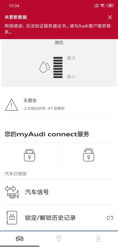 MyAudi China app连接不上,400和4S相互电话,均没能作答。