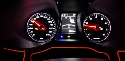 内饰我在购车后就自己加装了氛围灯和冷光线,阅读灯也进行了更改,改成了冰蓝色,效果也还不错,多功能方向盘也还行,听音乐时切歌啊,调整音量的也比较方便,右边的还可以调仪表盘的数值查看,中控屏也挺大,8寸,现代感十足,整体感觉内饰也不错