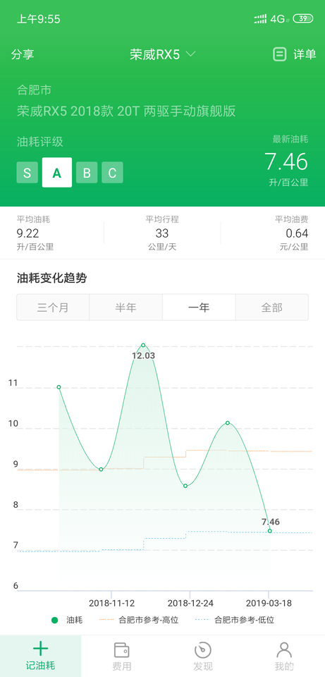 目前行驶了近7000公里,油耗我跑市区,大概在8.5,高速大概在7~7.5之间。