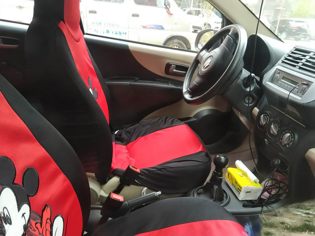 前排电动门窗,后排手摇玻璃。中控收音机。十年前这个配置在微型车里也可以了。黄黑配色符合当时的风格吧!