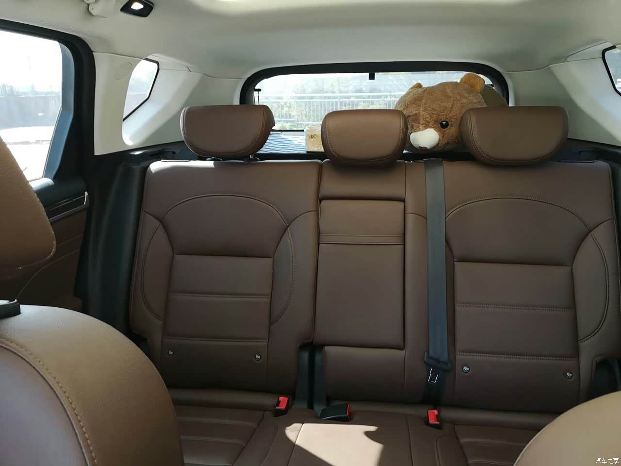 座椅软硬适中,前排座椅有电动调节,方便快捷,驾驶位还有腰部支撑,长途驾车更轻松。后排座椅靠背角度两档可调节,要是能再斜一点就好了,座椅厚度能再软一些就好了。