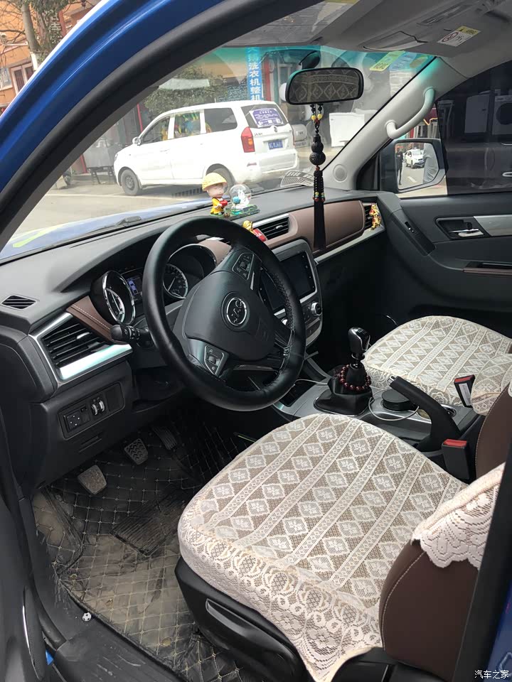内饰我觉得在皮卡里面算的上做的很好看的了。前面仪表台上有些地方还是皮料的,加上一键启动皮座椅,导航看上去就很上档次。比我哥那台长城的越野车都好看
