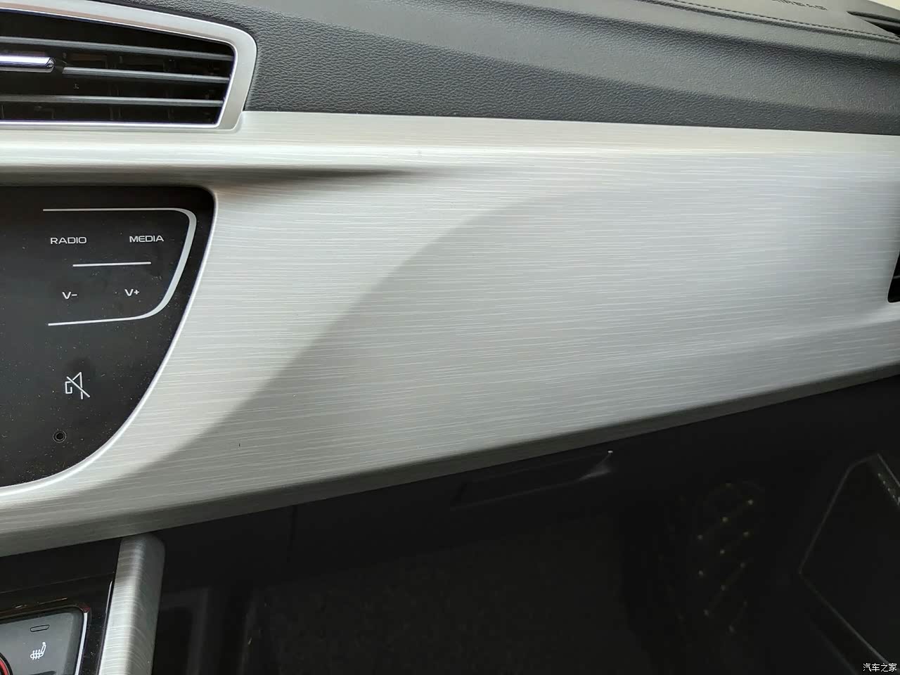 仪表台西湖拱桥设计,拉丝工艺,银色的面板营造出很强的金属质感。